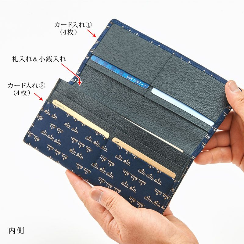 ![]() 厚みを軽減し、スッキリとしたデザインに。 ●サイズ: 縦 約9.2cm × 横 約19cm ![]() 上フタはサッと開けれるホック無しタイプ。 フタを開けると、左右両面にカードホルダーが付いています。 ![]() 厚みを軽減するために、通常のマチではなく笹マチにしています。お札が程よく収納できて、中身が見やすく取り出しやすいです。 ![]() 札入れ部分にも、カードホルダーとポケットを備えています。 カードホルダーは計12個、ポケット2つと収納が豊富です。 ![]() 小銭入れは、ファスナーで開閉するタイプです。 |