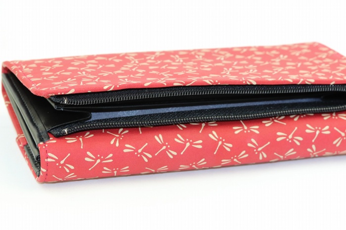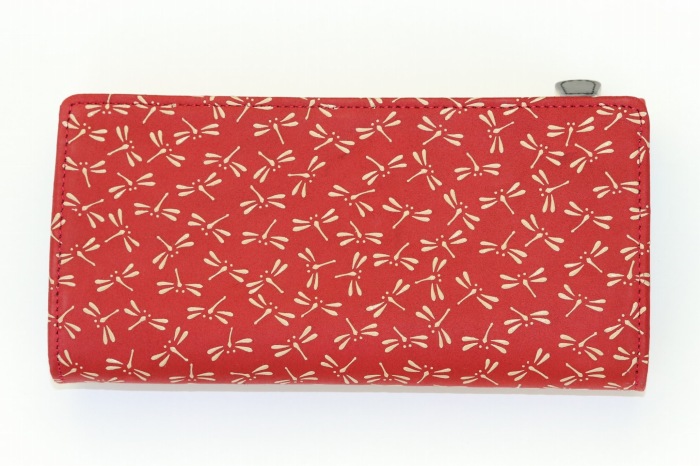 本革 かぶせ長財布(小銭入れ外側) 印伝 印傳屋 上原勇七 (INDEN-YA) 型番2310 赤地×白漆 とんぼ柄
