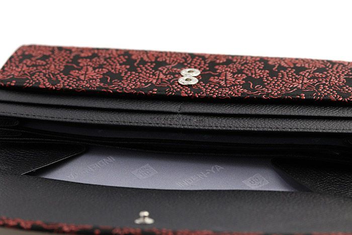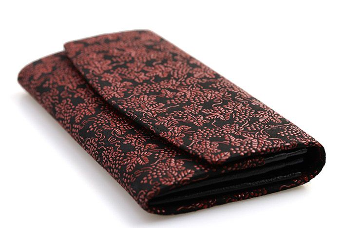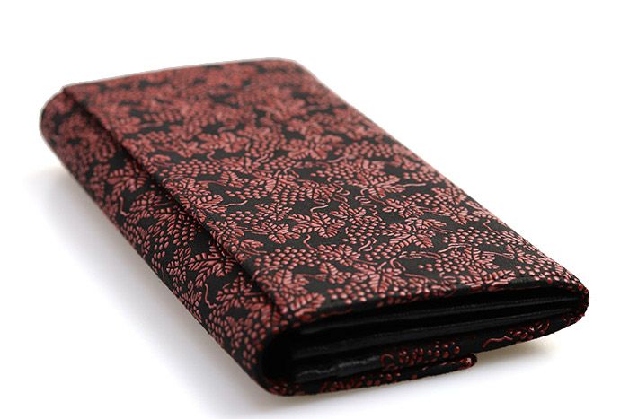 印傳屋 2314シリーズ 長財布(札入れ) ギャルソン / 黒地×赤漆 ぶどう柄 / 金具を使わず、大容量で出し入れ自在のギャルソンタイプの財布です。