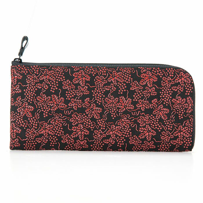 L字ファスナーで大きく開いて使いやすい長財布 印伝 印傳屋 上原勇七 (INDEN-YA) 本革 L字ファスナー長財布(小銭入れファスナー) 型番2315 黒地×赤漆 ぶどう柄