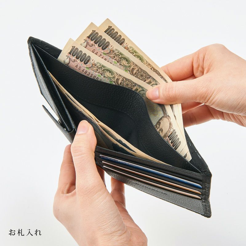 札入れには間仕切りがあり、紙幣やレシートを分けて整理することができます。