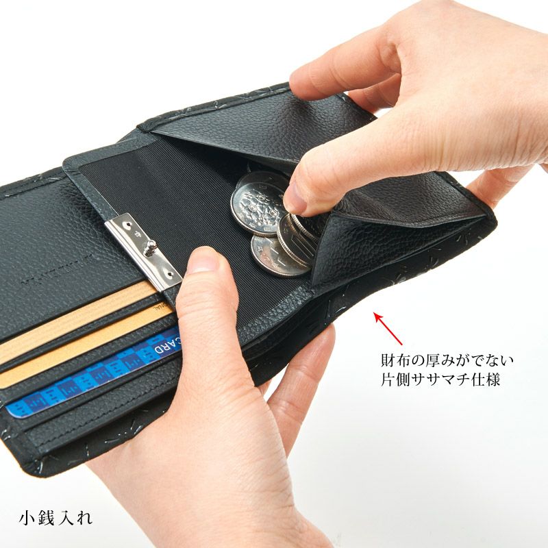 小銭入れは厚みを軽減するため、収納スペースは小さめ。小銭の利用が少ない方やコインケースを併用されている方にどうぞ。