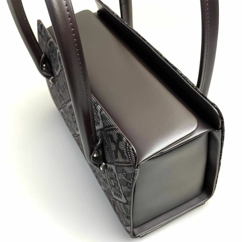 持ち手とマチ部分には光沢のある牛革を使用し上質感を醸しだします。