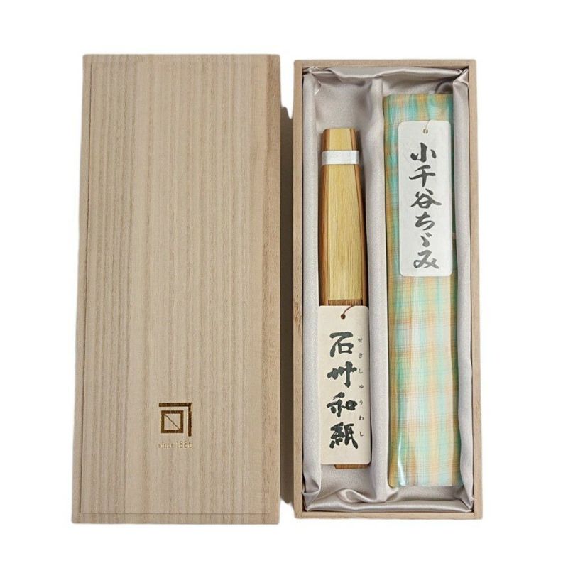 石州和紙を使用した扇子と小千谷縮の扇子袋セット