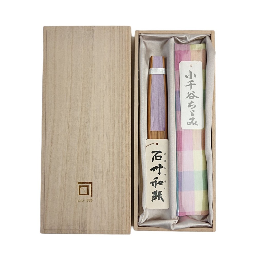 石州和紙 小千谷縮 扇子セット 婦人≪藤色≫伝統工芸品