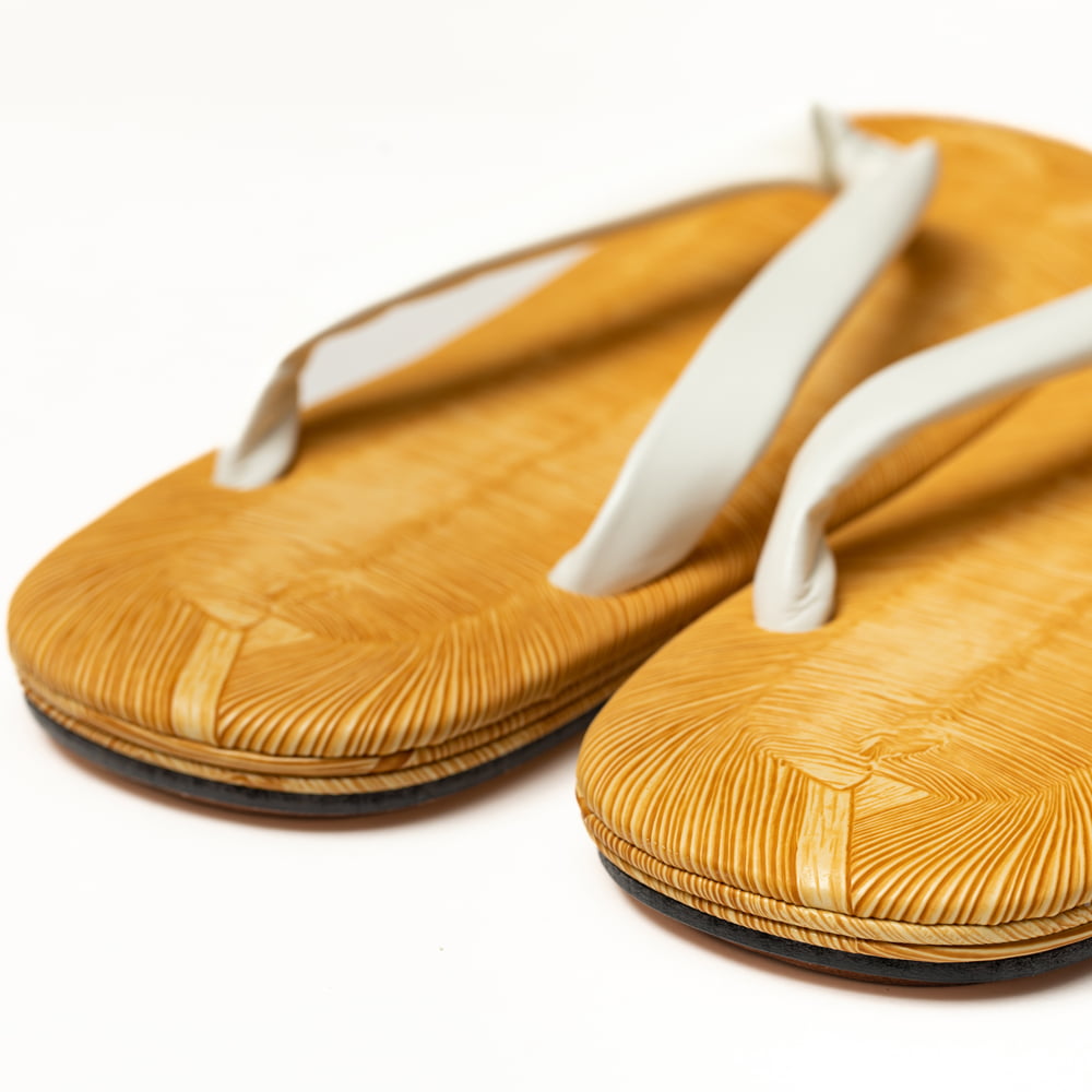雪駄は「かかと」が少しはみ出る状態でお履きになると長時間お履きいただいても足への負担が少なくすみます。