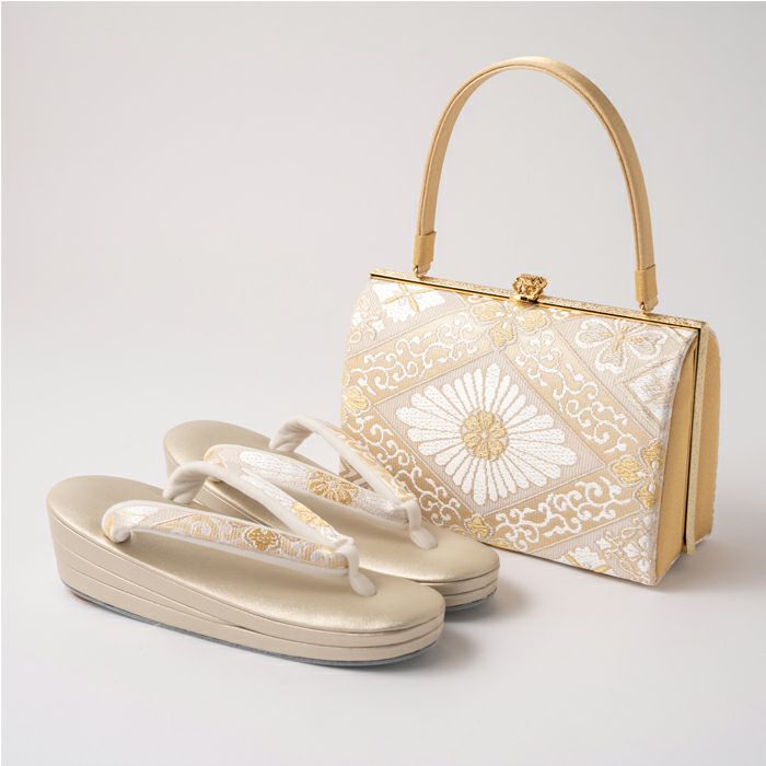 正絹帯地を使用した上品で華やかな礼装用草履バッグセットです