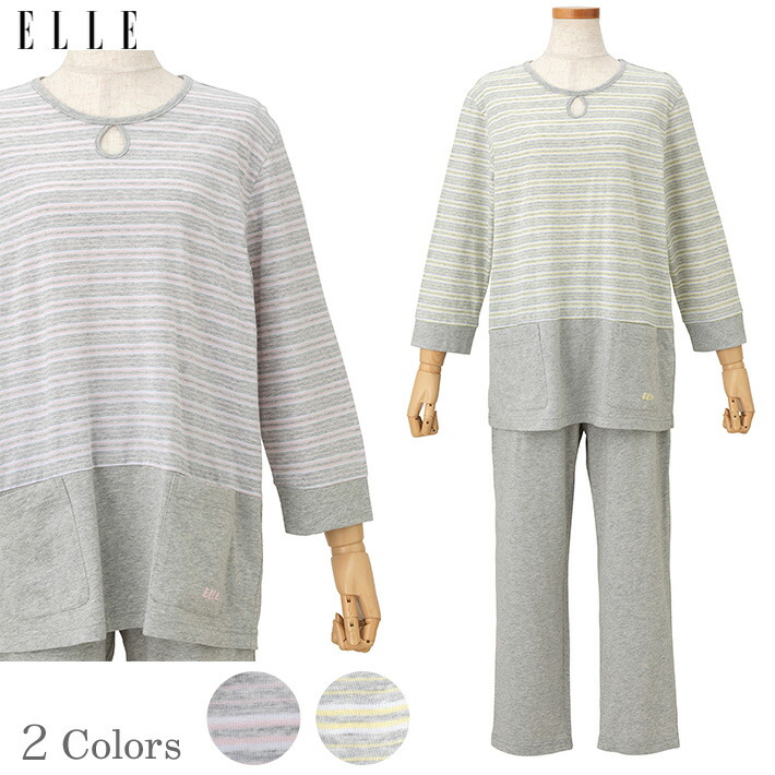 【ELLE/エル】 先染 天竺 ボーダー × 無地 春夏用 上下セット