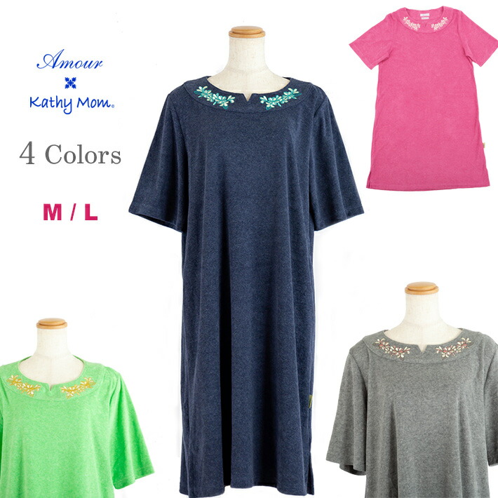 【Amour × Kathy Mom】 パイル地 首元刺繍 レディース ルームドレス