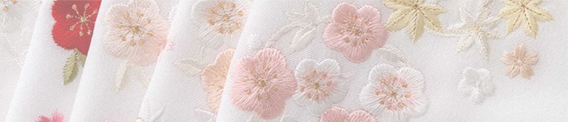 四季の半衿・季節を楽しむ半衿。詩的な表現が似合う半衿では、四季の移ろいに、よそおう人の遊び心や、個性的なイメージが彩りも鮮やかに表現されます。