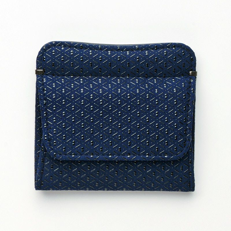 【印傳屋 1208】甲州印伝 本革 カードケース付き 四方開き小銭入れ《 紺地×黒漆 / ひょうたん柄 》